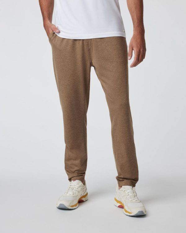 Track pant style in a super soft stretch knit. Built to sprint or to sprawl out, these moisture-wicking bottoms are finished with front and back pockets and zippered hemlines.