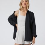 From walking tours to weekend sessions. The Villa Cami Romper is naturally wrinkle-resistant and ready for travel. Lightweight, partially recycled and silky soft performance stretch woven fabric. The design features a smocked bodice, pleated shorts and easy slip pockets.