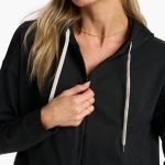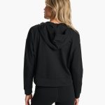 Might show up early, might stay at home. This full-zip hoodie is good either way with its soft and cozy performance stretch knit and just-right cropped length.