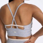 Our Long Line Elevation Bra is a confident design with a dropped neckline, strap details and a wide, comfortable band. Constructed in performance stretch knit with our ultrasuede, ultra-soft finish, this bra provides full coverage and medium support, and removable cups in a honeycomb mesh. Great for yoga and training.