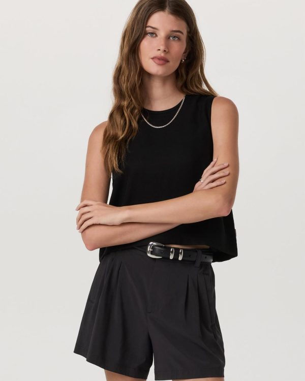 Women Tank Tops | Vuori Trestles Twill Crop Tank Black
